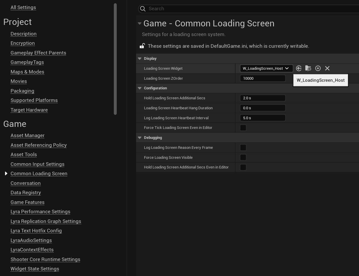 Set your newly created widget blueprint as the value of LoadingScreenWidget in the settings. Once done, you can try playing in editor and changing between levels in your game and the screen will show.